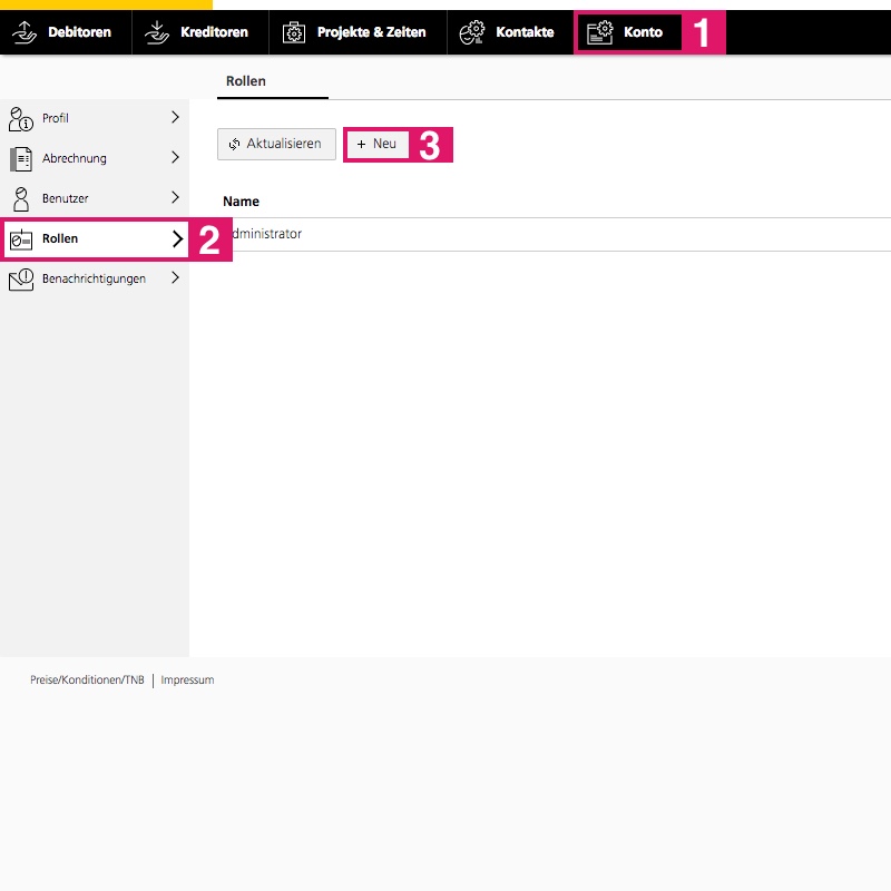 Può creare un nuovo ruolo alla voce «Conto > Ruoli > Nuovo».